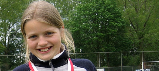 Olympisch atlete Dafne Schippers: “Toen ik negen was, begon ik bij atletiekvereniging Hellas in Utrecht. Ik had vanaf het begin enorm veel plezier in atletiek en was dankzij de speelse manier van trainen en de enthousiaste coaches meteen verkocht aan de sport. Toen ik bij mijn eerste wedstrijd gelijk een medaille won, werkte dat voor mij heel motiverend. Ik had nog nooit aan een wedstrijd meegedaan, ik had zelfs nog nooit getraind, en toen werd ik tweede! Daar is mijn liefde voor atletiek ontstaan.”